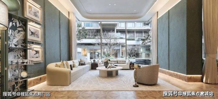 归家动线以环绕下沉式庭院布置。漫步在连廊之上,以水为引再铺陈精选的绿植,随手一拍,松弛气场油然而生。
