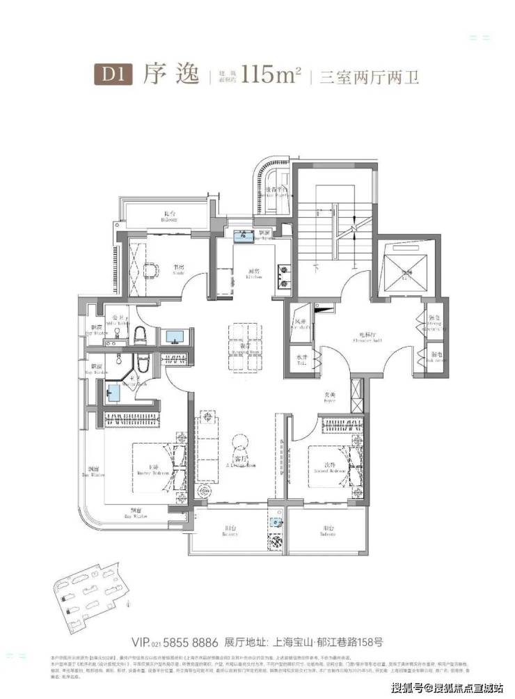 建面约115㎡鲲鹏阁三房户型