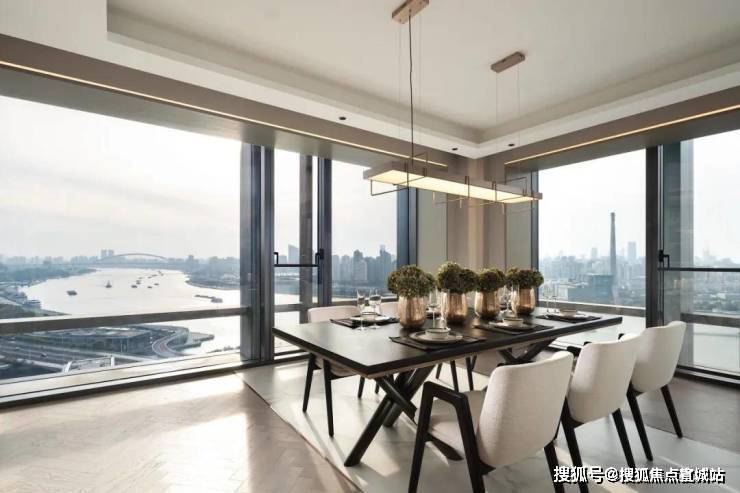 在厨房、在餐厅和客厅,还有在书房,你看到的景色如此多元。可以是阳光映射下的黄浦江美景、可以是壮丽的南浦大桥、可以是造型独特,宛若飞碟般的梅赛德斯奔驰文化中心,还可以是上海地标陆家嘴三件套。