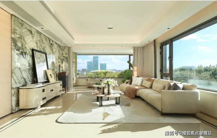 【约102㎡样板间】三房两厅两卫格局,同样的布局设计巧思应用于102㎡,打造出近乎双套房的生活体验。5米面宽横厅设计,营造极致通透感,臻选奢石融入空间,优雅时尚。厨房科学动线设计,搭配国际品牌五金和厨电,悦享精致烹饪时刻。星级主卧,独立卫浴,将空间最大程度延伸,打造舒居体验。