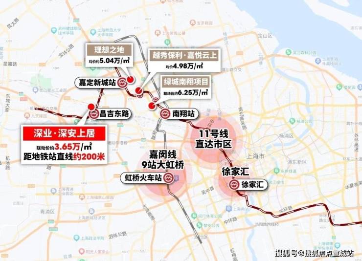 价格优势: 项目 联动价3.65万/㎡,向前2站的嘉定新城项目价格在5.04万/㎡,仅是多坐几站轨交,价格就大幅度回落,价值不言而喻。