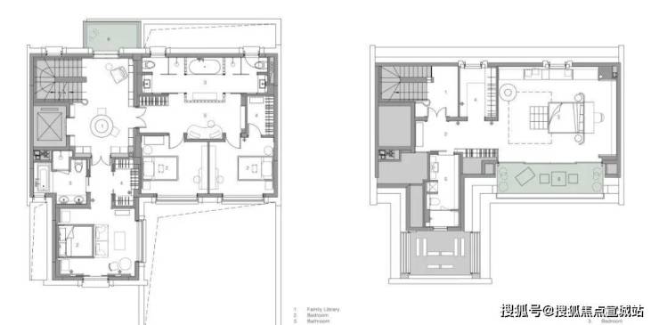 二层设有儿童区和父母房间。所有房间都围绕庭院布置,以充分利用景观视野。我们还将楼梯厅空间改造成家庭图书馆——在这个原本私密的楼层创造了一个公共空间。这为家庭成员增加了除客厅和地下室之外的又一互动空间,强化了我们对现代上海家庭——更多交通和爱的理念。