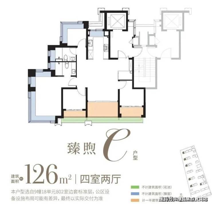 大致计算,98㎡双阳台+花池,可多享约7.8㎡,相当于送了约52万;108㎡三阳台+花池,可多享约12.3㎡,即约82万!