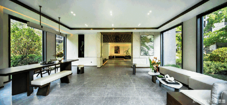 删繁就简间,与城市界面彼此呼应,运用大面积玻璃搭配简约硬朗的铝线条,让风景更近、园林更近。