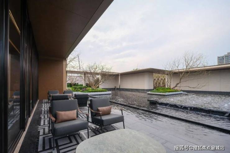 ·四重隐境水院:风雅会客厅出来经过风雨连廊区连接的就是项目售楼处,经过风雨连廊区的时候会看到项目打造的约650平米纯净自然的水域界面,楼台与水瀑交融,享受回家的仪式感。通透的艺术廊道,彰显了以人为本的设计理念,既能遮风挡雨,也可以从容漫步,整个无界水院采用了水系堆叠,层层变换,错落有致,美不胜收!