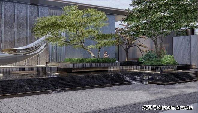 第二重:入口仪式水景内聚外放,礼仪尊贵,彰显都市盛宴辉宏气势;