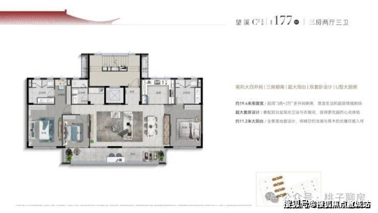 【旷尺面宽】三房朝南或两房朝南格局,以巨幕空间,迎阳光与风光入室。