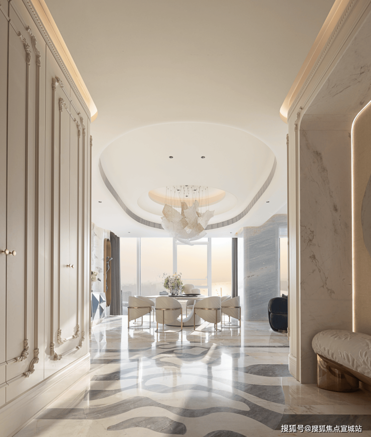 设计师在这处空间中,展现出了非凡的创意与匠心。他巧妙地打破了传统空间的束缚,让动线不再受限,居住者可以自由地穿梭于各个区域之间。这种设计不仅让空间显得更加灵动与开阔,更将奢华豪邸应有的华贵气度,毫无保留地融入到了每一个细节之中。