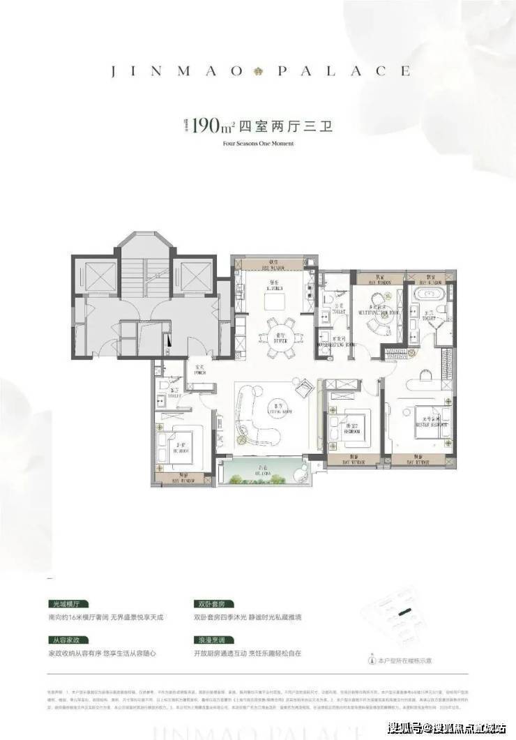 ●建面约190㎡4房:楼王位置的顶奢大平层,同价位段在杨浦只能买到约120㎡3房!