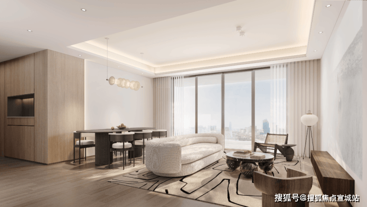 外立面采用甄选材料,以“干挂铝板+大面积三玻两腔LOW-E玻璃”形成轻盈公建化立面,兼顾审美、技艺与品质,大面积三玻两腔玻璃赋予建筑流光镜幕般的澄澈立面,整体更加通透、明亮,映见四季万象。