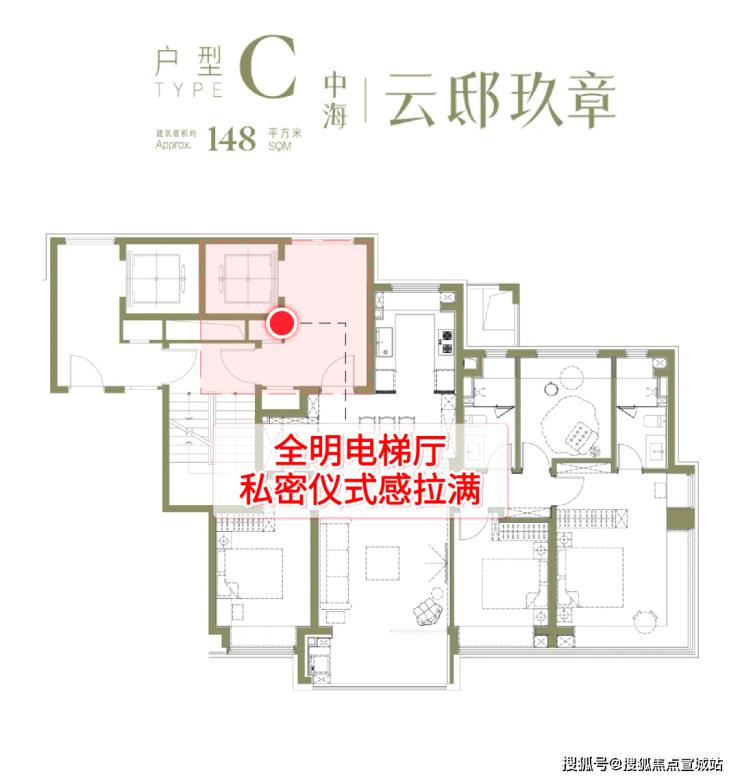 148㎡户型:26套,真四房+全明电梯厅+270度转角飘窗+内外双玄关-无敌地毯率王炸户型,此次也是绝版超香价格购入148㎡户型的机会!