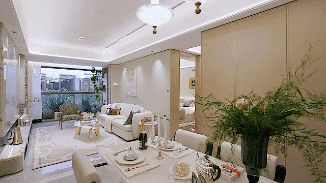 客餐厅同宽的一体化设计,公区视野更开阔,消灭过道对面积极致利用!