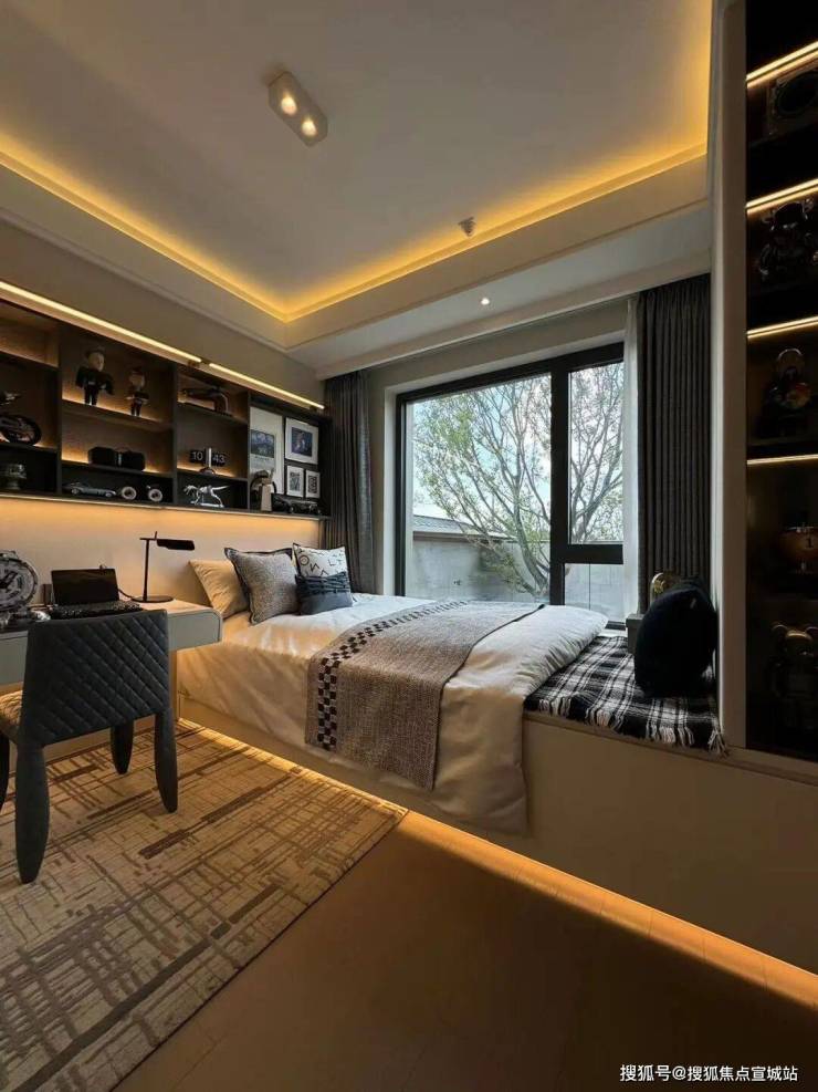 而人行线路则由星级酒店式的入户大堂进入,接着便是6S会所环绕的下沉式水景庭院,约7米高磅礴大气的水景墙配合乌桕林和原石、浮桥交错的地面水景,若是傍晚归家,还能欣赏倒映在水中的点点星光,可谓满满的奢雅意境和尊贵仪式感!
