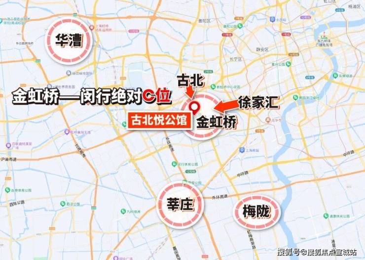 1. 古北悦公馆,属于闵行金虹桥,非传统长宁古北,但是属于古北拓展区,在传统古北无土地供应的情况下,是未来建设发展的方向,已打造古北壹号、古北中央公园、古北大成公馆等知名豪宅,且价格高且坚挺;靠近中环