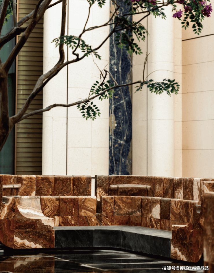 整个庭院材料选用土耳其进口老虎玉定制,选择交由匠人耗时60天,手工打磨定制,纯手工不仅极耗时间而且工艺复杂,深度考验匠人的技艺。海上·清和玺希望在产品的最终呈现上,能真正还原一个有温度的庭院将匠心融入场域之中,真正为每一位业主营造“休憩品书”的贵雅瞬间。仅仅这一方庭院价值就已近百万,可见海上·清和玺对业主归家仪式感设计的用心与苛求。