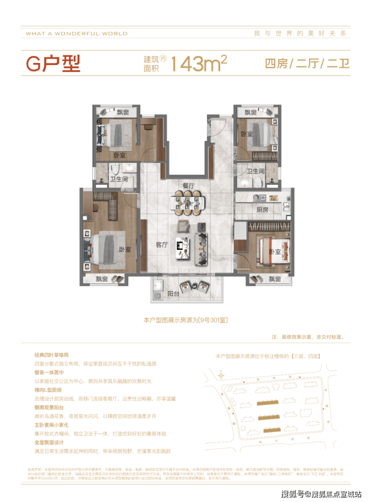高层主力户型(精装,76-143㎡,得房率约 80%):