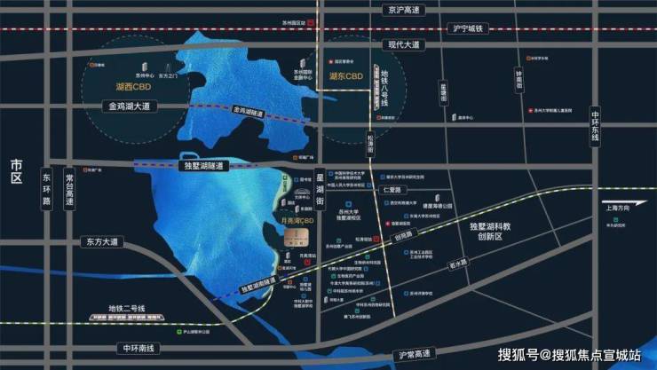 毗邻独墅湖隧道、独墅湖南隧道、中环南线