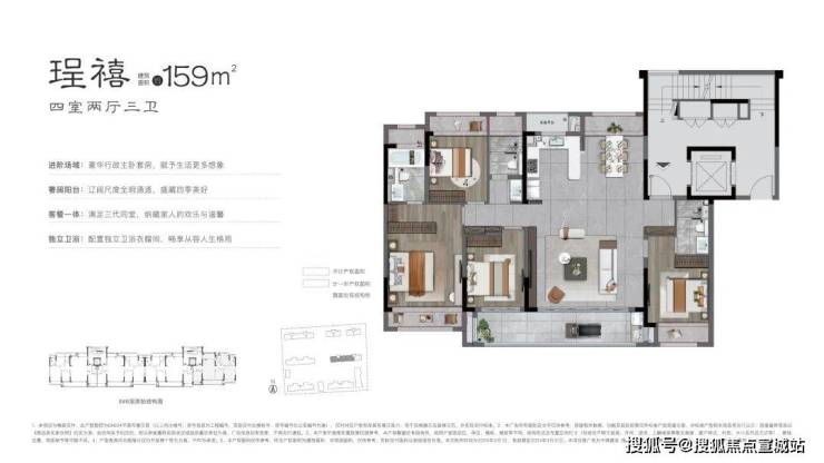 主力户型:有 124㎡三室两厅两卫、143㎡四室两厅两卫、159㎡四室两厅三卫三种户型。124㎡户型三开间朝南,南向面宽达 10.5 米;143㎡户型采用四开间朝南、横厅设计,LDK 一体化通透空间约 35㎡;159㎡户型四开间朝南,南向面宽达 14.2 米,主卧套房面积约 32㎡。