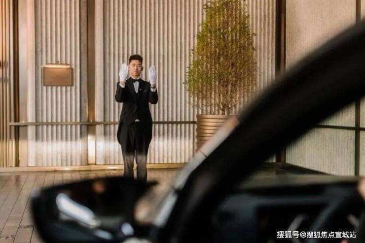 约110M超大尺度城市界面,仪式水景拾级而上,定制级艺术雕塑,酒店礼遇仪式侯迎隐奢归家。