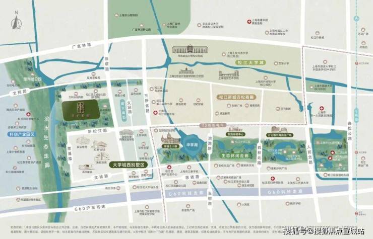 萃屿原墅所在的松江新城高端别墅区北接松江大学城,南临G60科创走廊,东靠政务金融中心,西邻油墩河谷规划,兼具成熟配套与产业动能: