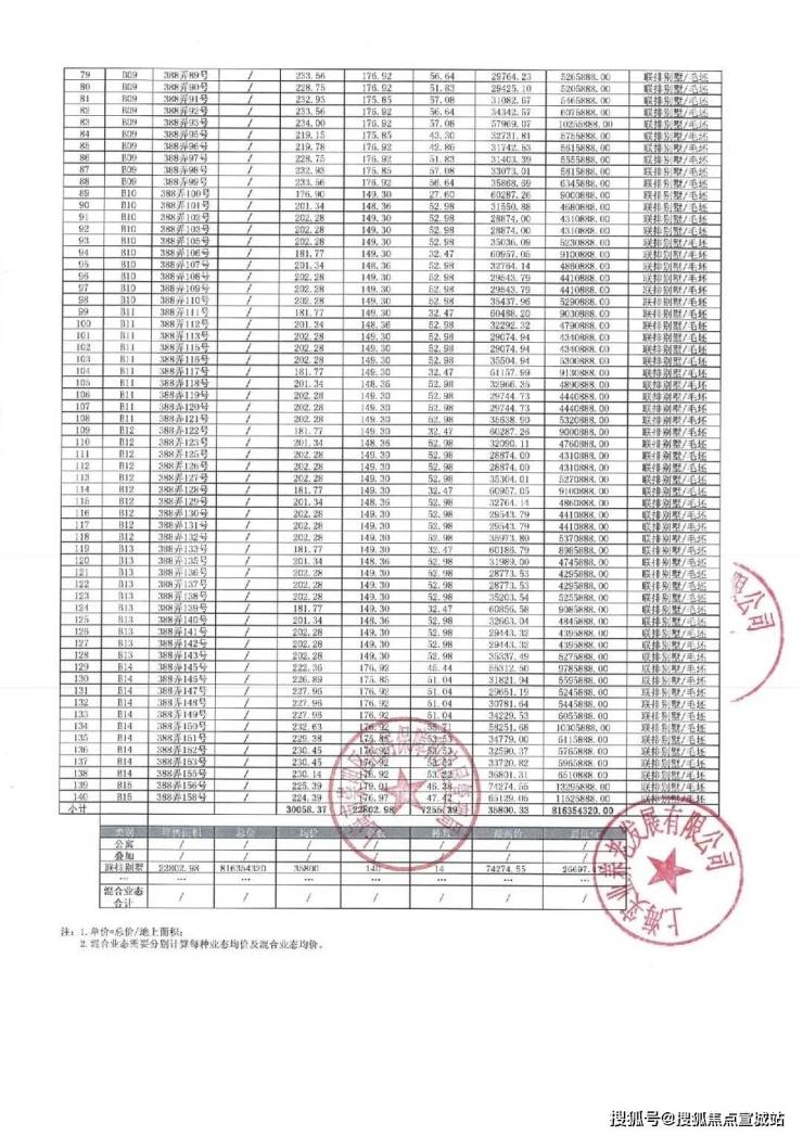 一房一价表及销售公告