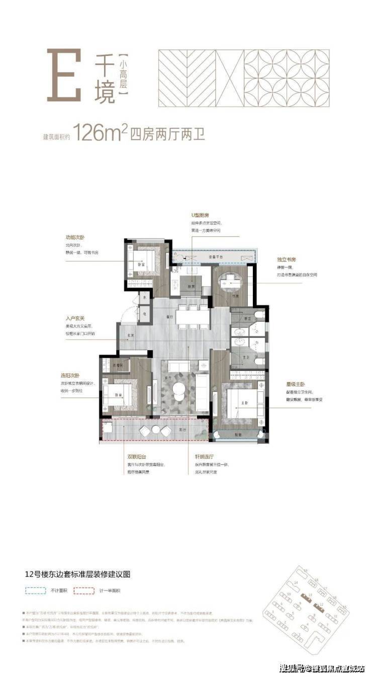 户型整体采用四开间朝南的优越布局,主卧套房尊享约3.8米的大开间,搭配私密独立的卫浴空间,不仅提升了居住的舒适度与私密性,更彰显出生活的品质与不凡格调.