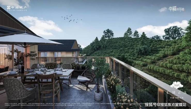 巨幕观景客餐厅,全落地通透超大玻璃,辅以270°跑道阳台,共享茶山、日落与晚风