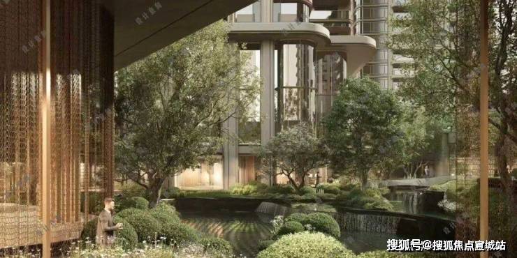 三层归家动线:从地面景观层到架空层,再到入户层,穿越绿植、光影与水景,步步进入私域。