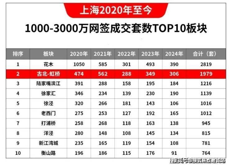 新房供应的缺失,也使得古北二手房成为圆梦古北的唯一选择,二手市场常年火爆,数据显示,2020年至今,上海1000-3000万价格段的二手房网签成交量中,古北连续5年高居全市第二,仅次于面积和楼市体量都远超古北的花木板块!