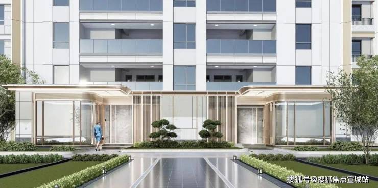 社区入口对标慢奢酒店,环岛落客、精装地库、艺术入户大堂