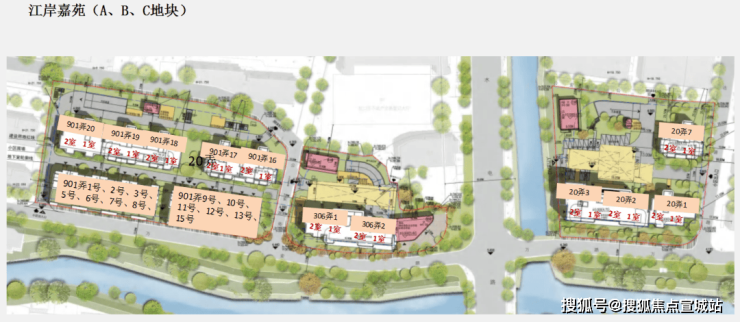 规划设计:项目整体建筑布局随河蜿蜒,高低错落的建筑形态契合江南水乡的水韵特色。设计中将 7 个独立的地块与滨水空间相结合,通过对商业、绿化、广场界面的有机穿插,整合成为一个与景观河道交相辉映的公共长廊。