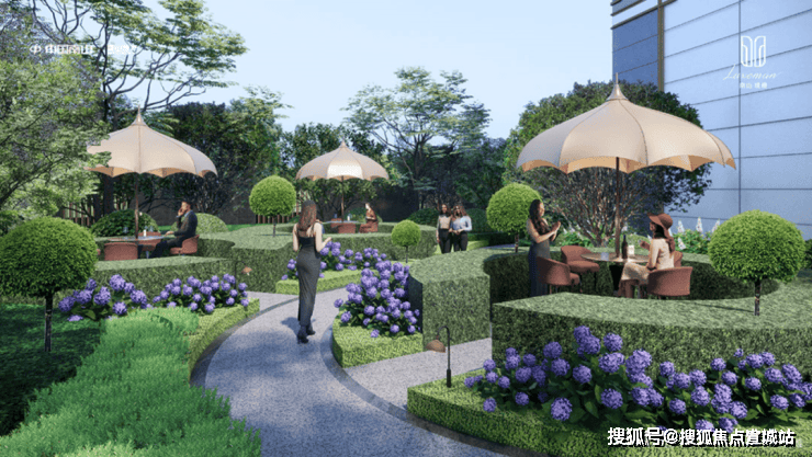 嘉定主城首个下沉星光悬瀑水景庭院,对标佛罗伦萨四季酒店,融入“琉璃水光”的独特形意,打造酒店式归家体验。