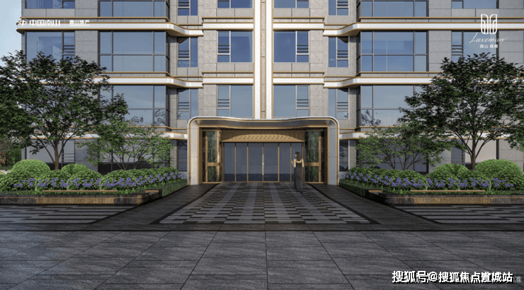 嘉定主城最大入户门庭,约45米奢阔尺度,采用宾利飞翼造型,彰显显赫门楣。