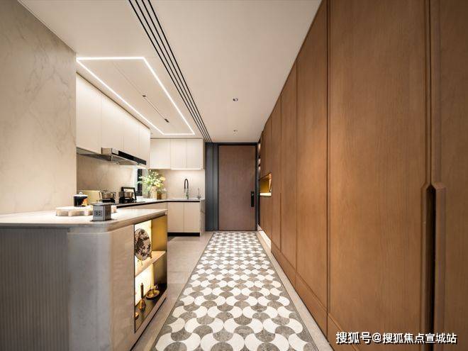更让人惊喜的是,这里还有智能家居系统、消毒鞋柜以及用于冰箱内嵌冰箱的“S墙”。仅仅是入户这一部分,就已经亮点满满,让人充满期待。可以想象,在这样的空间里生活,每一天都如同置身于梦幻之中。