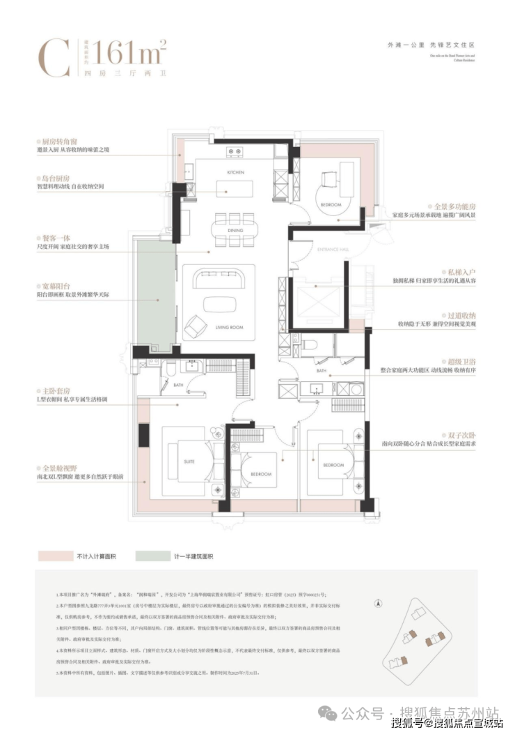 而建面约161㎡的奢享四房,则是对改善需求的深刻洞察。其设计更是颠覆性的:全屋四个转角窗构建外滩天际环幕视野,三卧朝南且近乎等面宽的“真四房”设计,实现了家庭成员间的景观平权与舒适平权。酒店式四分离次卫与独立家政空间的设计,更是对生活细节的极致考量。