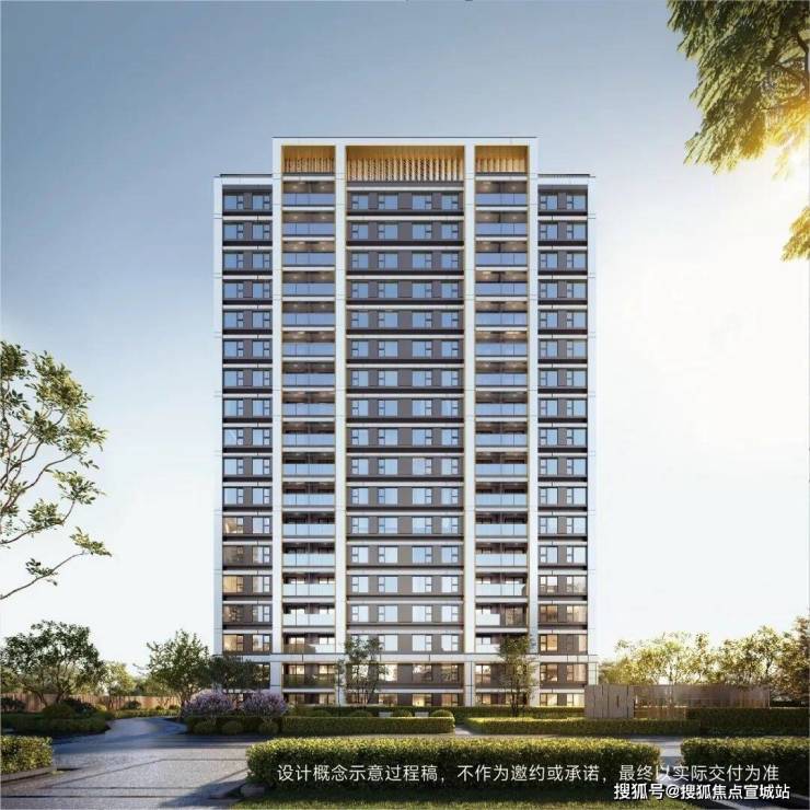 项目外立面采用现代简约建筑风格,点缀金色的框线,极简优雅但又不失格调,符合小区所在莘庄商务区稀缺核心住宅的定位。