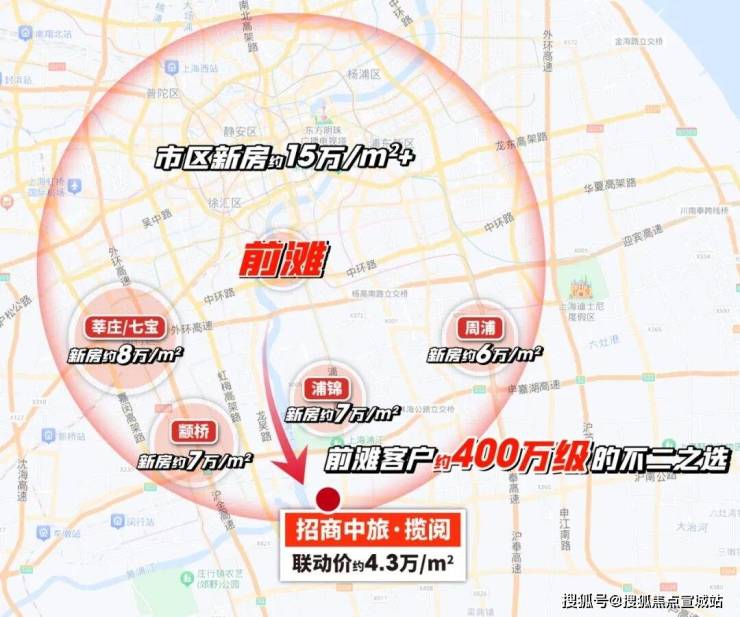先来看地段,整个上海约400万级的楼市中:招商中旅·揽阅的地段价值,遥遥领先。