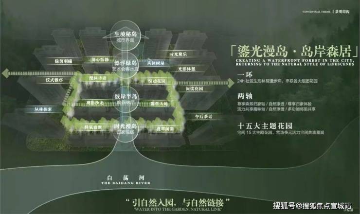 绿化率35%,规划“一环两轴十五园”景观体系,含400米环形跑道、童趣乐园;