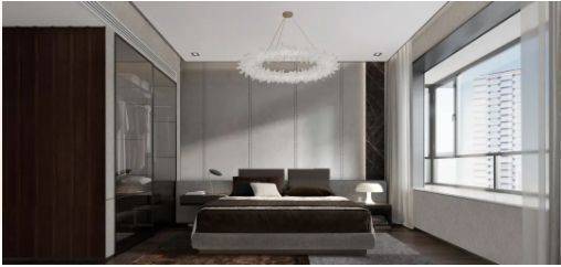 主卧的打造上是经典的“酒店式”套房设计,在保证私密空间不受打扰的同时,还拥有清晰流畅的动线快速抵达其他功能区。