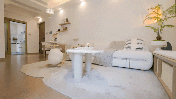 客厅连接阳台,正如样板房这样,宠物也能拥有自己的小天地,既可改造为休闲区,亦可作为储物空间,小户型也能拥有大生活。