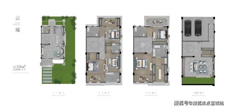绿城云溪里:面积约280-326-355㎡,最大庭院超450㎡,5重奢华套房,总价1100万起!