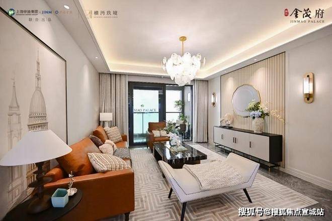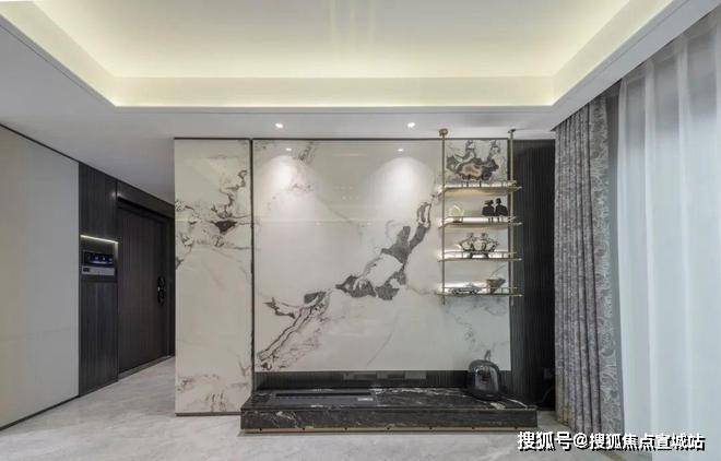✅✅张江金茂府售楼处电话:400-8862-334✅✅金茂定制壁布/墙纸:结合芬迪白岩板打造的客厅背景墙,营造独特的归家氛围。