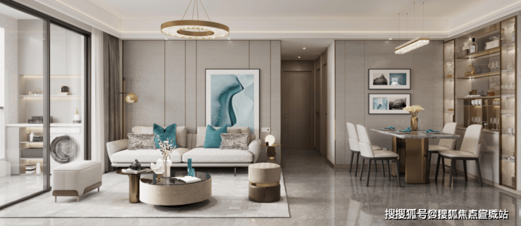 客餐厅相连,客厅南连宽景阳台,3米层高+奢阔面宽,整个空间开阔感一下子铺展开来;