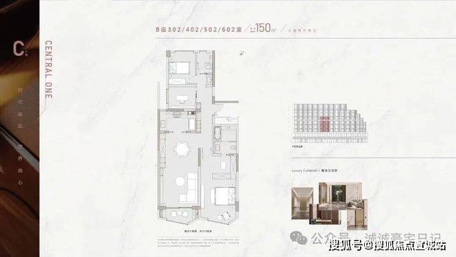 户型特点:3-4 房主力户型层高 3.15 米,270㎡边厅户型实现约 21 米南向面宽,客餐厅一体化面积约 65㎡。