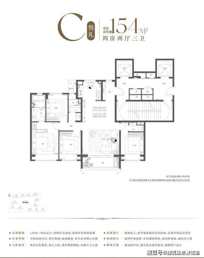154㎡4房2厅3卫户型图▼