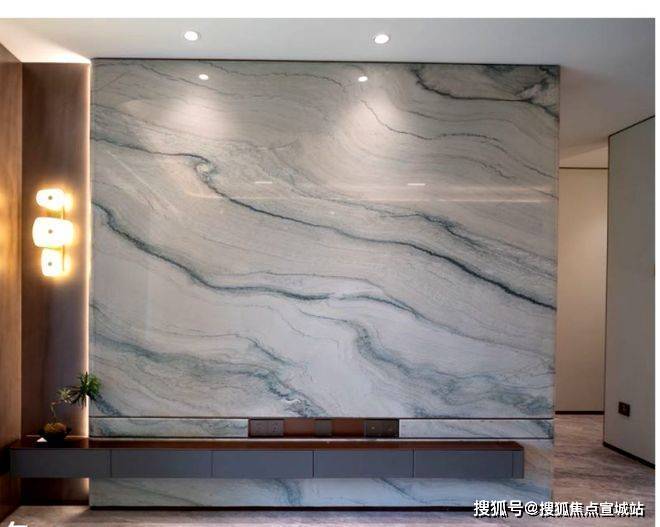 电视背景墙选用带有东方意蕴的万里河山石材,颜值超高!
