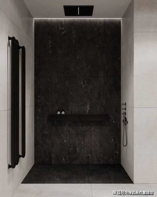 非常现代的洗浴间,用大面积的白色搭配了黑色的浴缸和镜子边框,整体不失单调,却非常奢华。