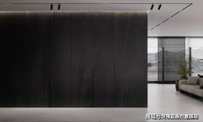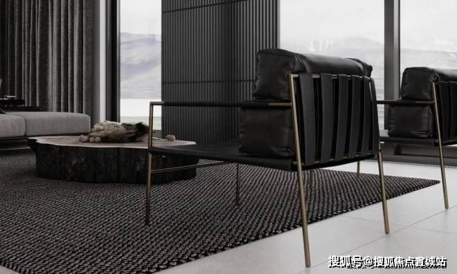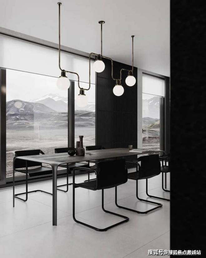 客厅以黑灰的配色提升了整体的高级感。落地窗将户外的美景都容纳于空间中的同时,也提升了客厅的开阔与光线的饱和。