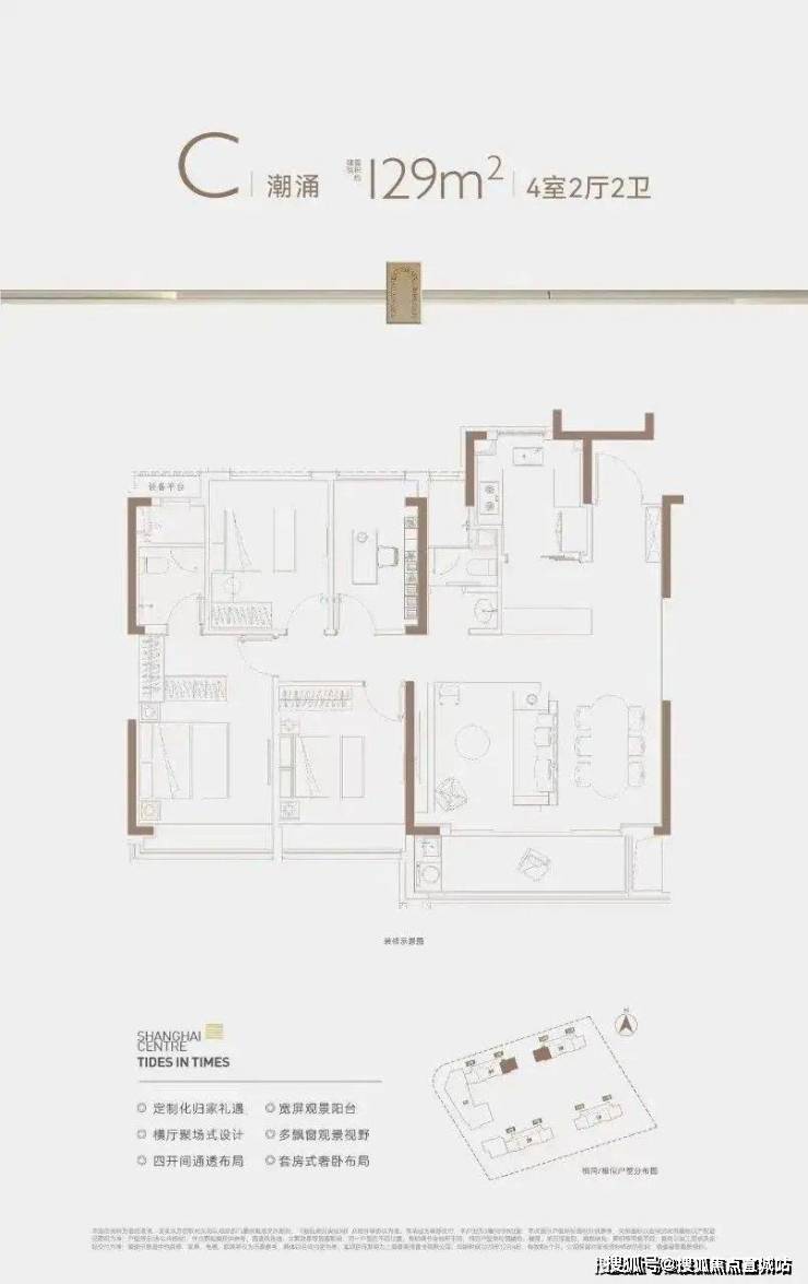 高得房率的另一大优势,则是让空间布局更为灵活。尤其是在浦东曹路难得的大四房——建筑面积约129㎡户型中,各个功能空间的设计有了更多发挥余地。四开间的通透布局,让自然光线提高家的亮度。聚场式横厅、套房式主卧与观景次卧得以南向一字排布,将家人的舒居感受置于首位。未来,当三代同堂正式上演,的新家便会成为承载美好的容器,包容日常的更多可能,让大美人居可持续生长。