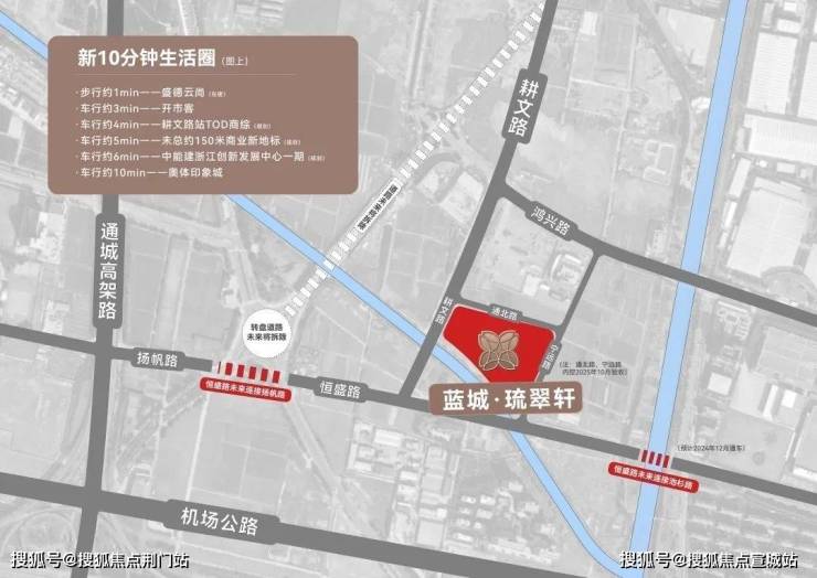 自驾出行更是便捷, 机场城市大道、通城高架、空港快速路等多条城市主干道围绕在项目四周,轻松触达钱江新城、滨江、机场等城市核心区.